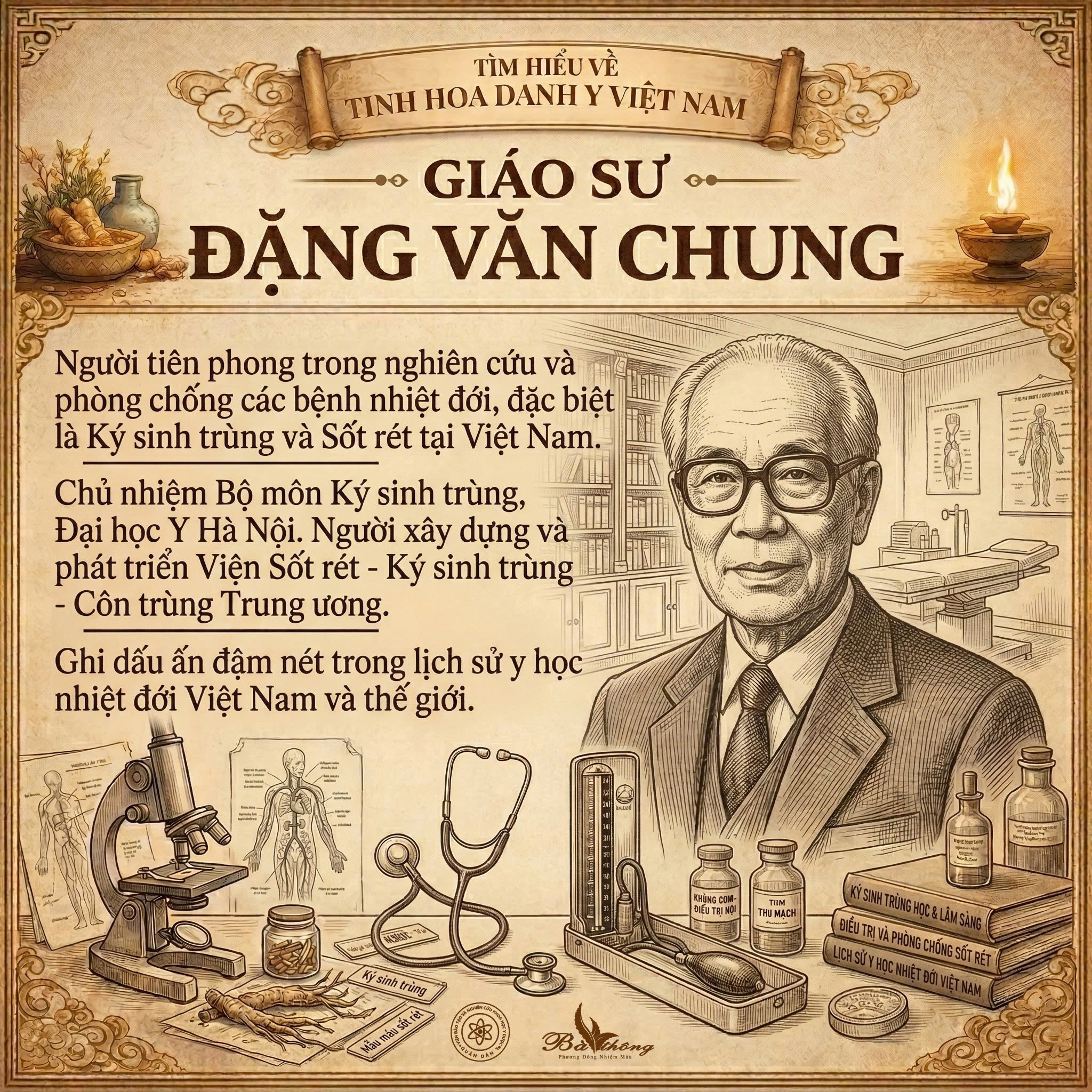 Giáo sư Đặng Văn Chung (1913–1999), sinh tại Sa Đéc (Đồng Tháp), là một trong những thế hệ bác sĩ được đào tạo bài bản trong giai đoạn đầu của nền y học hiện đại Việt Nam. Ông thi đỗ vào Trường Đại học Y Dược khoa Đông Dương năm 1933 và trở thành bác sĩ nội trú tại Bệnh viện Bạch Mai vào năm 1937.