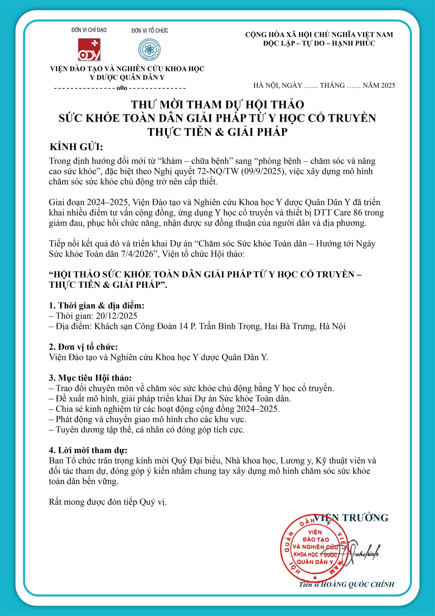 ✅ Viện Đào tạo và Nghiên cứu Khoa học Y Dược Quân Dân Y rất mong nhận được sự tham gia và đồng hành từ Quý vị!