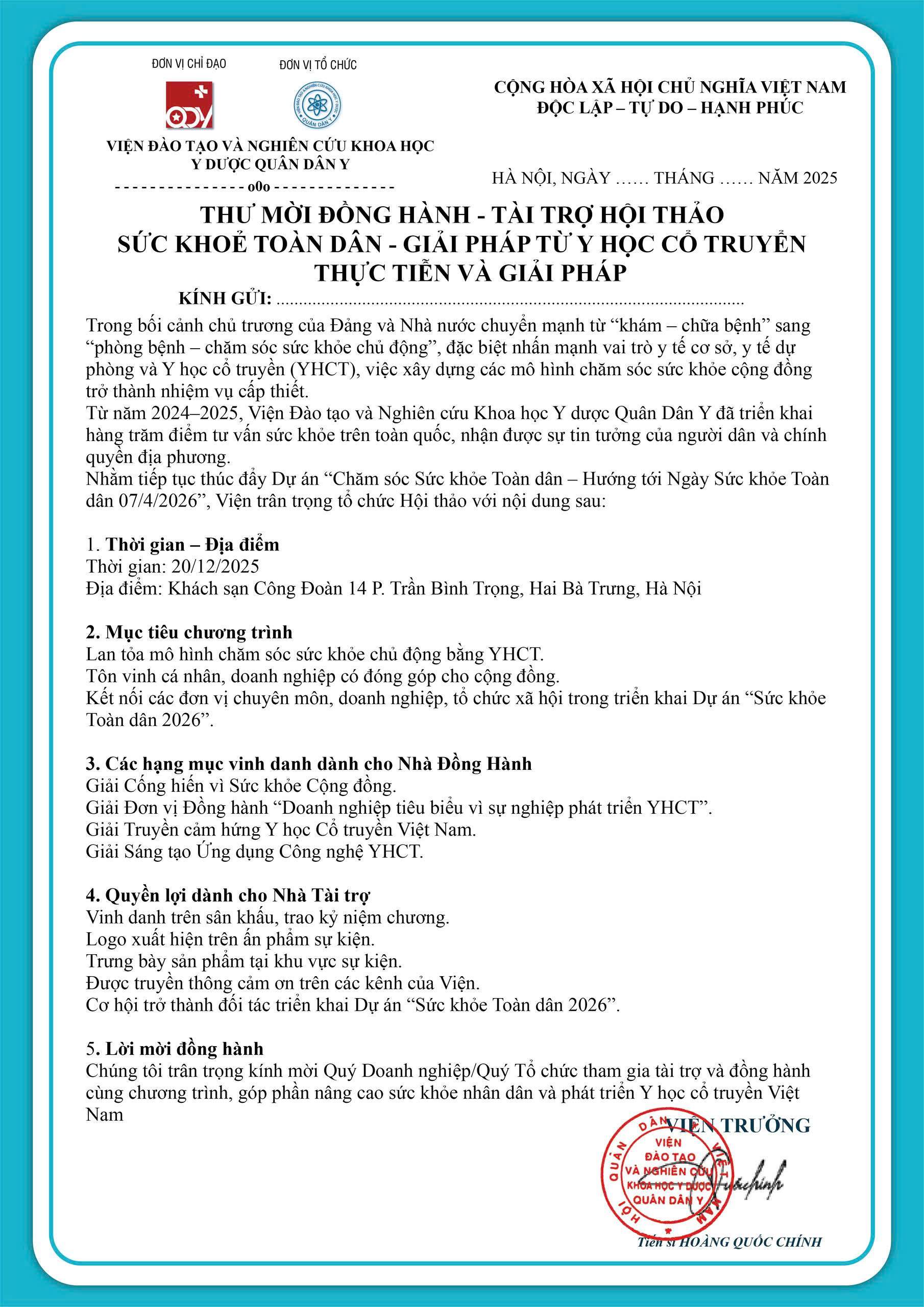 Ban Tổ chức trân trọng kính mời Quý Doanh nghiệp, Tổ chức cùng tham gia đồng hành và tài trợ cho chương trình – cùng chung tay góp phần nâng cao sức khỏe cộng đồng và phát triển Y học cổ truyền Việt Nam.