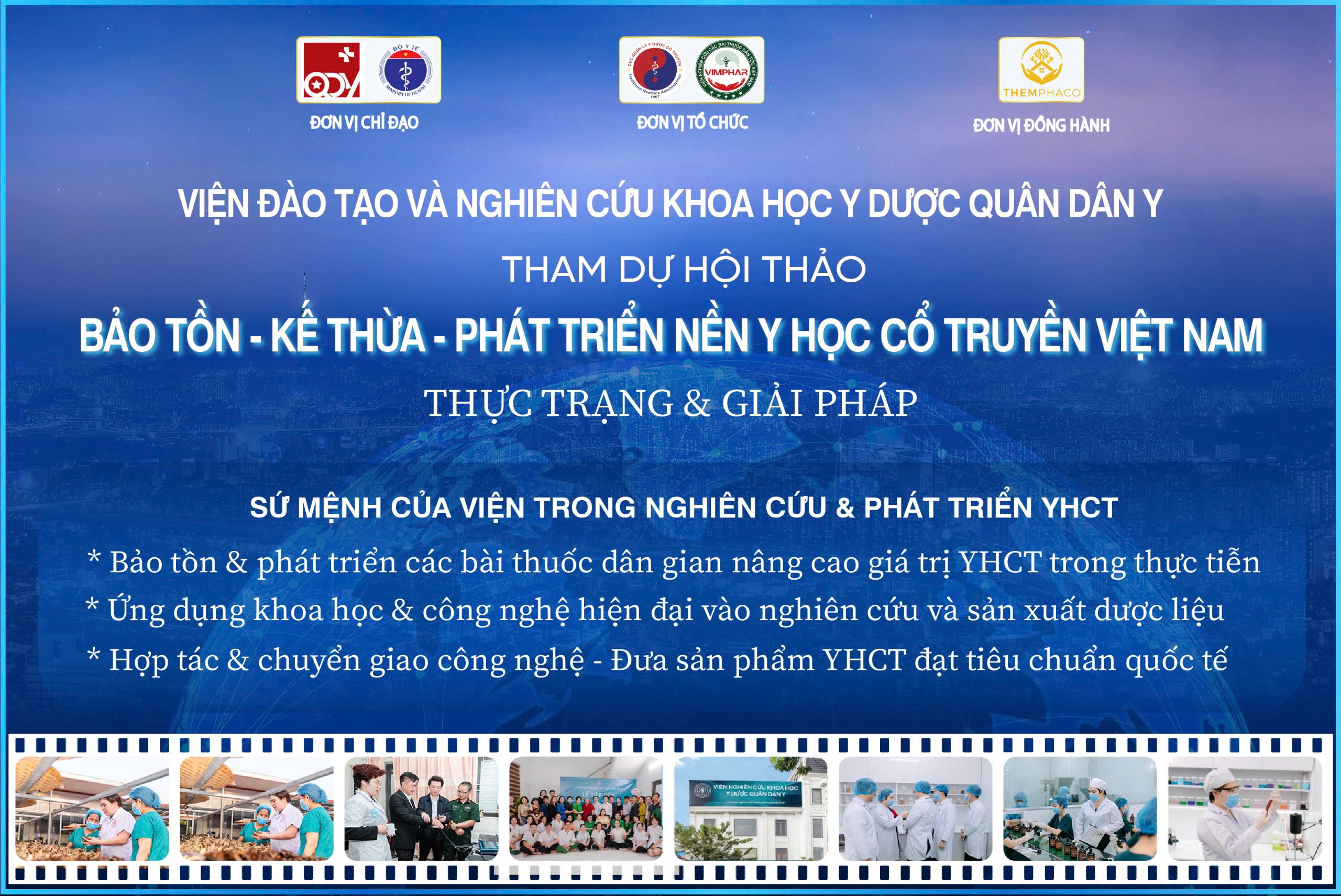 Ngày 28/3/2024, Hội thảo khoa học với chủ đề "Kế thừa, Bảo tồn, Phát triển Y học cổ truyền (Thực trạng & Giải pháp)" đã diễn ra thành công tại Hà Nội, do Bộ Y tế phối hợp cùng Hội Quân Dân Y Việt Nam tổ chức. Sự kiện có sự tham gia của các lãnh đạo cấp cao, các chuyên gia đầu ngành, nhà khoa học, bác sĩ y học cổ truyền và các doanh nghiệp tiên phong trong lĩnh vực dược liệu và chăm sóc sức khỏe bằng y học dân tộc.