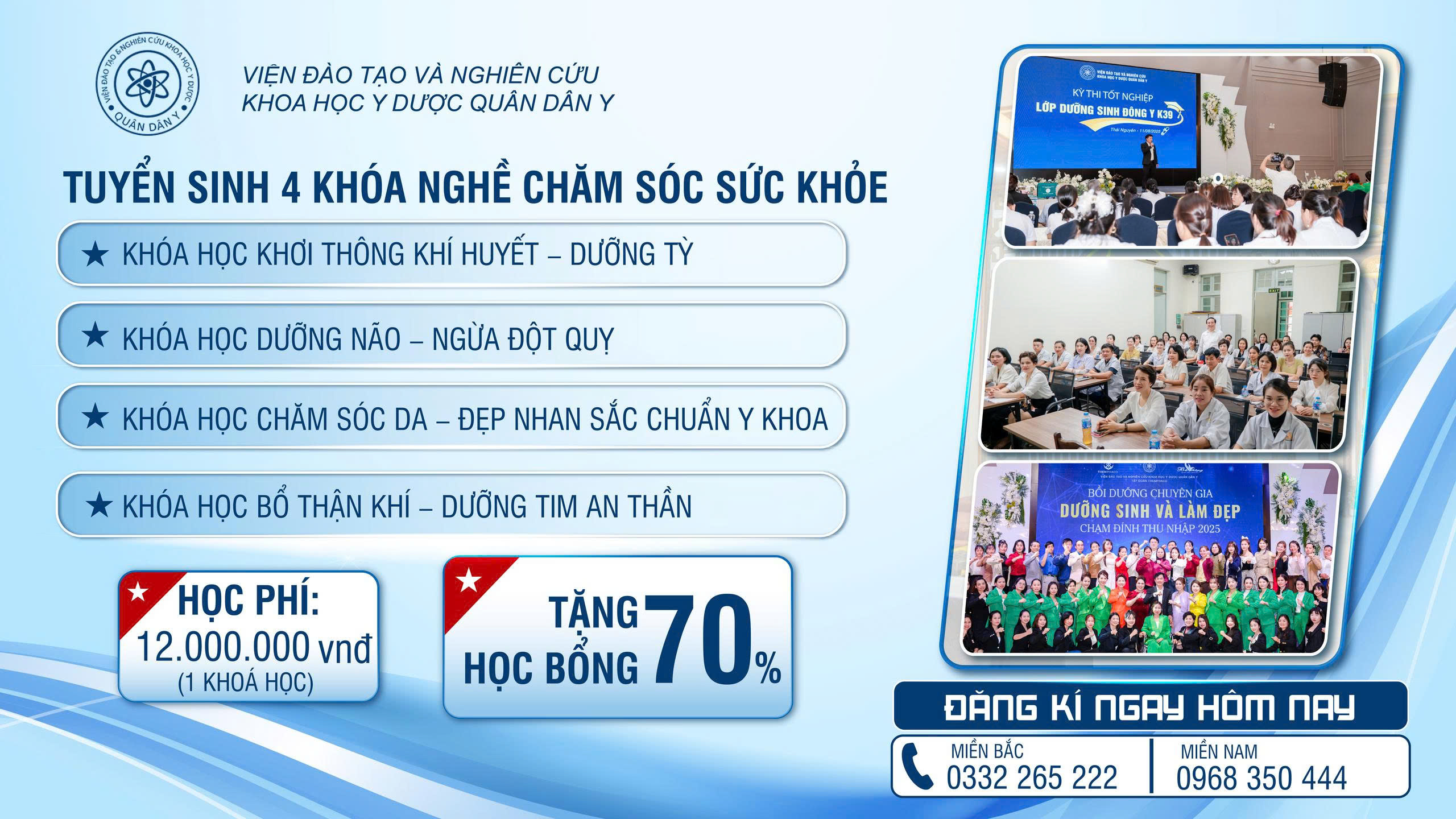 Viện Đào tạo và Nghiên cứu Khoa học Y Dược Quân Dân Y thông báo tuyển sinh khóa học “Đẹp da – Nhan sắc chuẩn Y khoa” dành cho học viên và các cá nhân có nhu cầu học tập, nghiên cứu, ứng dụng trong lĩnh vực làm đẹp an toàn và khoa học.