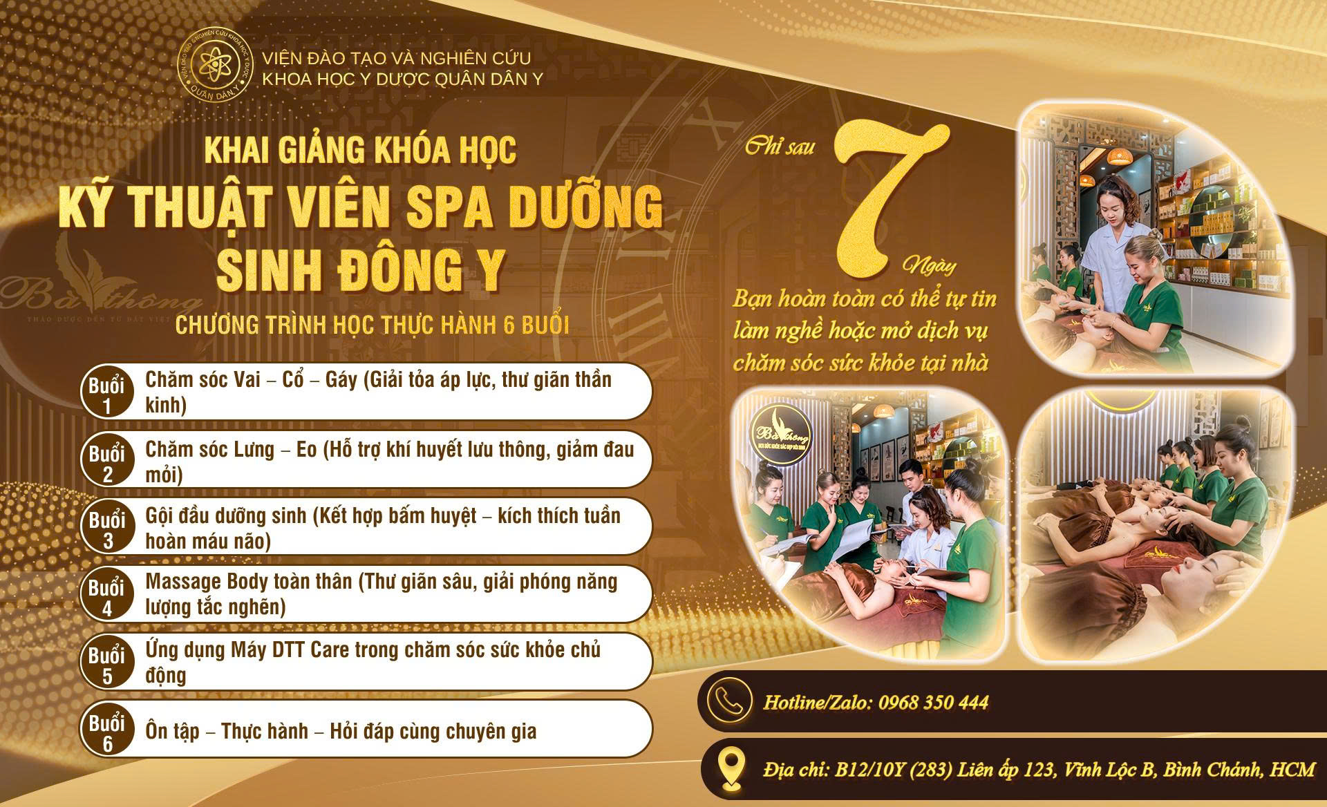 Viện Đào Tạo & Nghiên Cứu Khoa Học Quân Dân Y cùng Tập đoàn Themphaco trân trọng thông báo tuyển sinh Khóa học Kỹ thuật viên Spa Dưỡng sinh Đông y dành cho những ai mong muốn theo đuổi nghề chăm sóc sức khỏe và làm đẹp bằng phương pháp Đông y truyền thống kết hợp kỹ thuật hiện đại.