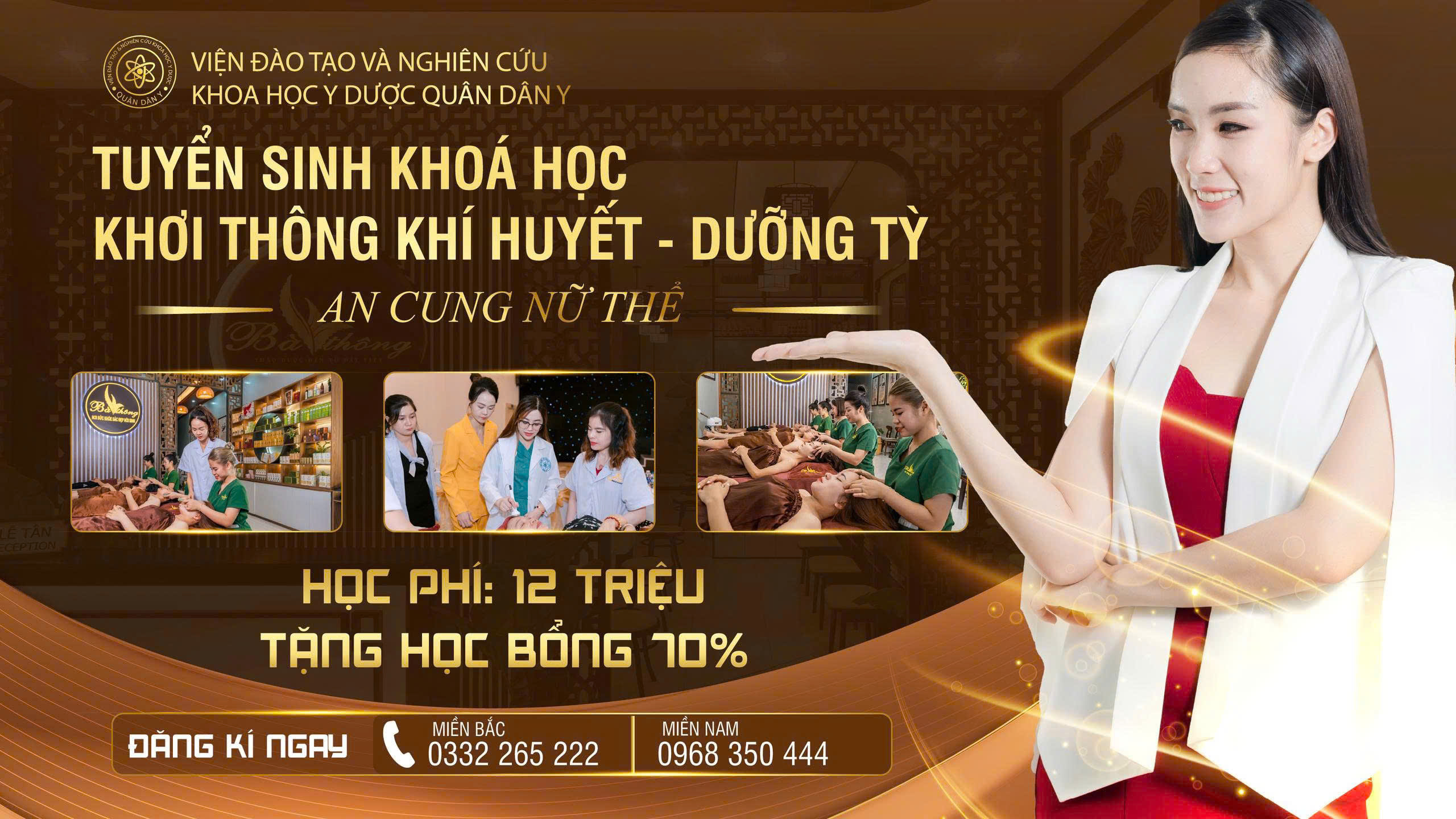 Viện Đào tạo và Nghiên cứu Khoa học Y Dược Quân Dân Y chính thức thông báo triển khai chương trình Phỏng vấn và Đăng ký Học bổng Toàn phần cho khóa đào tạo nghề Dưỡng sinh - Spa Chuyên sâu (3 tháng), áp dụng tại cả 03 cơ sở đào tạo của Viện Đừng bỏ lỡ cơ hội nhận học bổng miễn phí 100% học phí và nhận hỗ trợ toàn diện để vững bước khởi nghiệp trong ngành Dưỡng sinh - Spa