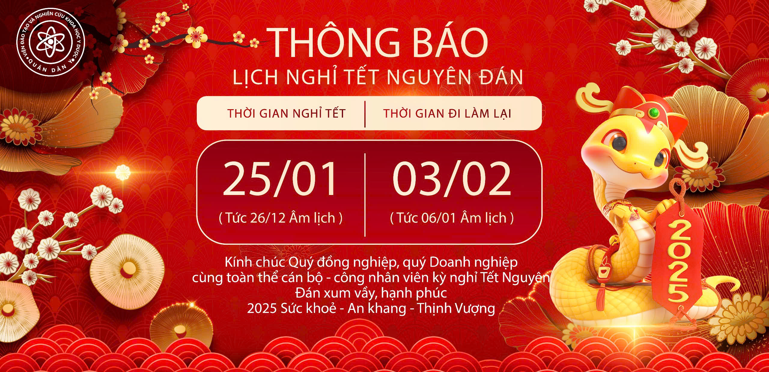 Viện Đào tạo & Nghiên cứu Y Dưhttps://viennghiencuukhoahocyduocquandany.vn/app/organizeợc Quân Dân Y trân trọng thông báo đến Quý khách hàng, đối tác và toàn thể cán bộ, nhân viên về lịch nghỉ Tết Nguyên Đán 2025 như sau: