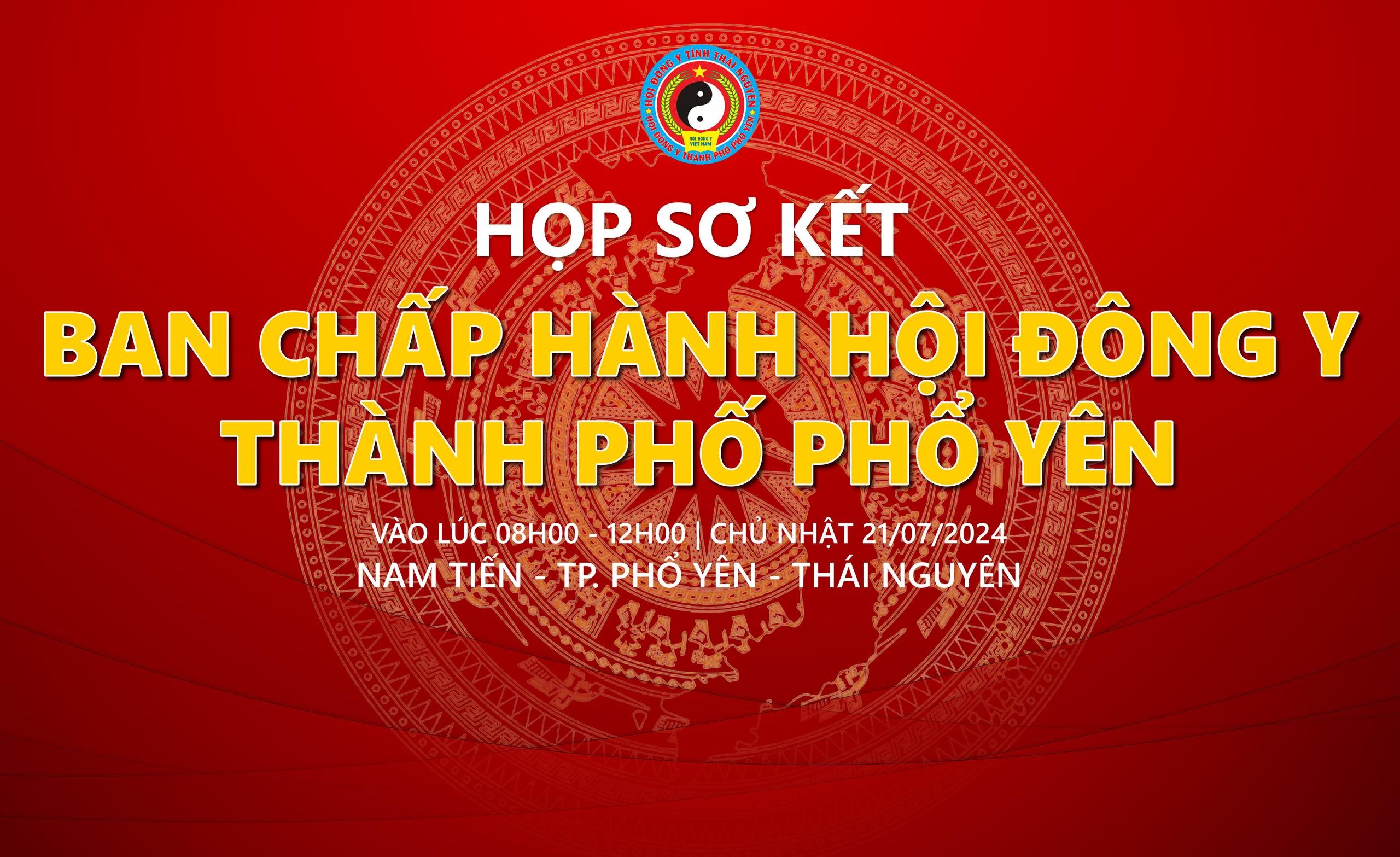 Kính gửi quý hội viên và cộng đồng, Hội Đông y thành phố Phổ Yên trân trọng thông báo, vào ngày mai, 21/7/2024, Hội sẽ tổ chức buổi họp sơ kết ban chấp hành nhằm tổng kết lại các hoạt động đã thực hiện trong thời gian qua và chuẩn bị cho Đại hội Đông y thành phố Phổ Yên năm 2024.
