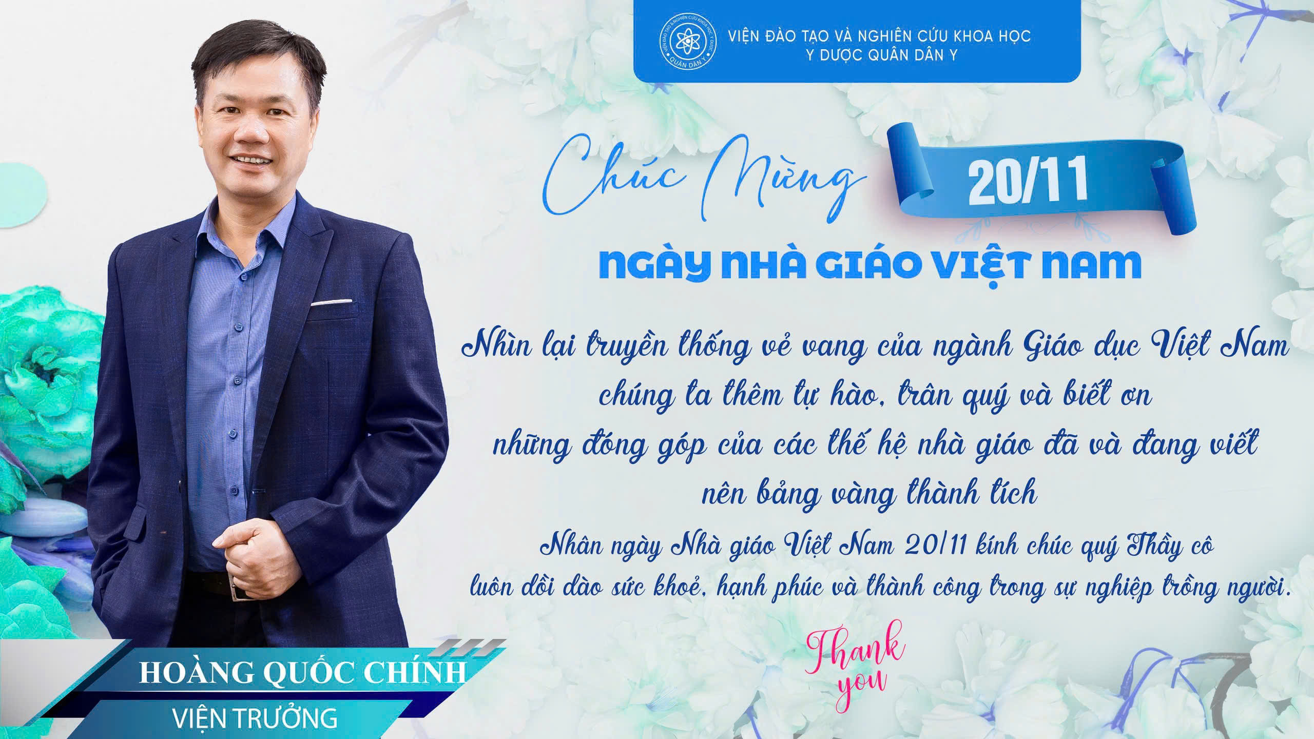 Trong không khí tri ân nhân Ngày Nhà giáo Việt Nam 20/11, Viện Đào tạo và Nghiên cứu Khoa học Y Dược Quân Dân Y xin gửi lời chúc mừng và lòng biết ơn sâu sắc đến quý Thầy Cô - những người đã không ngừng cống hiến tâm huyết và trí tuệ cho sự nghiệp giáo dục.